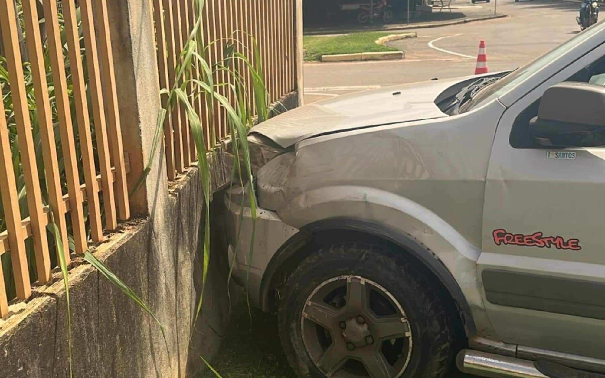Sequência de colisões atinge 4 carros e muro de sindicato em Colíder
