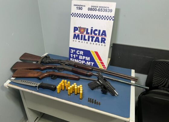 Suspeito de ameaça é preso pela PM com três espingardas e uma pistola em Sinop