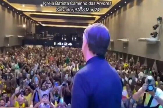 Multidão ovaciona Bolsonaro em encontro do PL em igreja de Salvador, ASSISTA