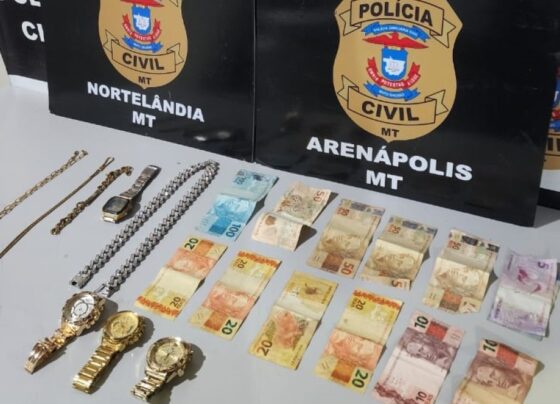 Polícia Civil prende criminosos envolvidos em roubos em joalherias em Arenápolis e Denise