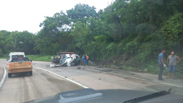 As equipes de resgate da Nova Rota e do Corpo de Bombeiros estão no local prestando atendimento às vítimas.
