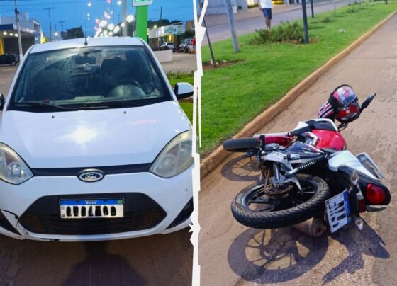 Motociclista fica ferido após colisão com carro na Avenida Brasil em Vera