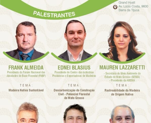 O evento será aberto com a palestra “Madeira nativa sustentável”, que será apresentada pelo presidente do FNBF, Frank Rogieri. Em seguida, é a vez do presidente do Cipem, Edinei Blasius, que falará sobre o tema “Descarbonização da construção civil – potencial florestal de Mato Grosso”. A rastreabilidade da madeira de origem nativa será abordada pela secretária de Meio Ambiente de Mato Grosso e presidente da Associação Brasileira das Entidades Estaduais de Meio Ambiente, Mauren Lazzaretti.
