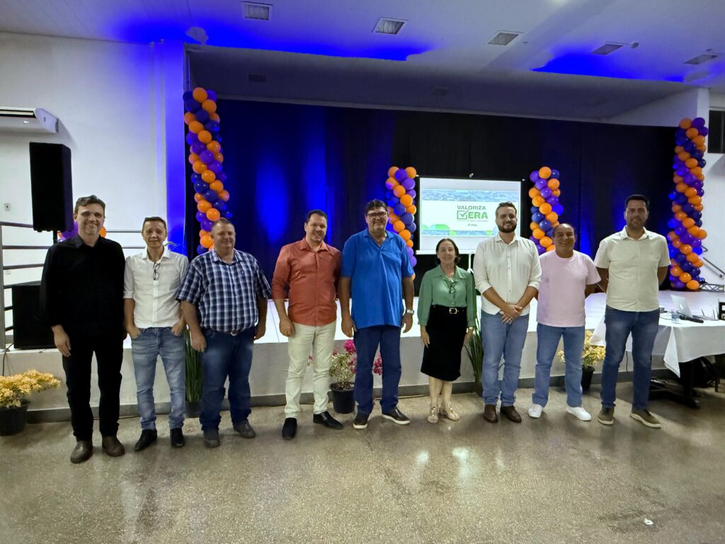 Em um ato solene realizado na noite desta quarta-feira, 22 de outubro, o município de Vera instituiu o Programa Valoriza Vera. O evento de lançamento ocorreu no Centro de Eventos Olimpio Giacomnelli e reuniu empresários, servidores, vereadores, secretários e as principais autoridades municipais, como o Prefeito Yago Pezarico Giacomelli , o Presidente da Câmara de Vereadores, Jader Paulo Izidorio, e a Vice-Prefeita, Dra. Ana.