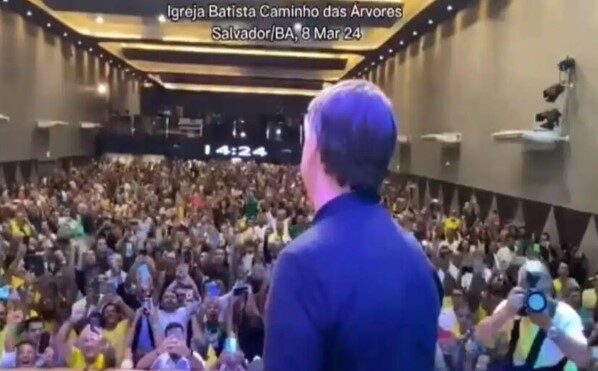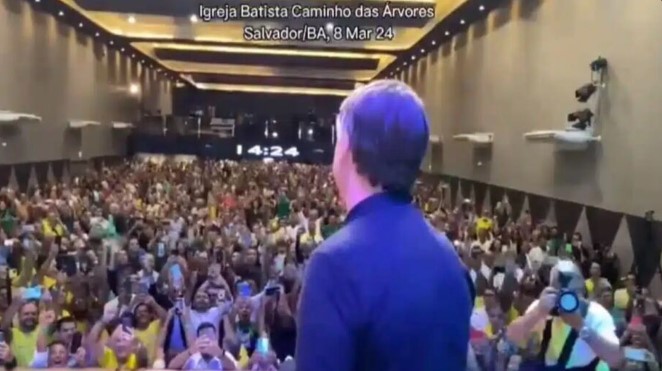 O ex-presidente Jair Bolsonaro junto com o presidente do PL Bahia, João Roma, visitaram a Igreja Batista do Caminho das Árvores para uma reunião com os pré-candidatos do PL para as próximas eleições. Bolsonaro, como ex-presidente, foi ovacionado e aplaudido pelos presentes no local.