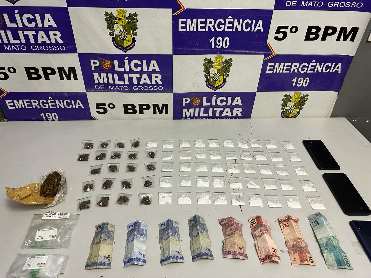 A Polícia Militar (PM) realizou a prisão de dois traficantes na região central de Rondonópolis, na madrugada deste sábado (24), em ações distintas.
