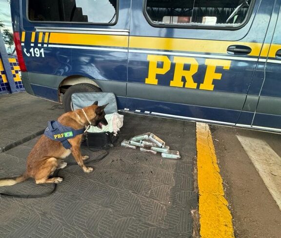 Nesta quinta-feira (11), a Polícia Rodoviária Federal (PRF) apreendeu 08 tabletes de entorpecentes (pasta base) em um ônibus no município de Rondonópolis (MT).