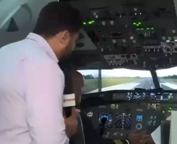 Enquanto um repórter da Globo realizava uma entrevista ao vivo, a cena mostrava um simulador de voo. Mas, o cenário bem montado e a maneira como foi transmitido fez muitos visualizarem o que parecia uma queda do avião. A cena inusitada gerou uma série de comentários nas redes sociais.