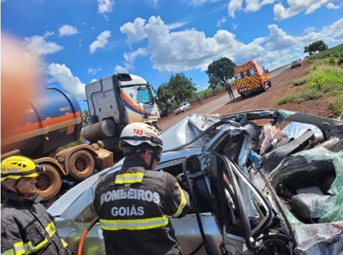 Fotos mostram que a frente do carro ficou completamente destruída com o acidente. Com o uso de desencarcerador e técnicas de salvamento, a equipe retirou as vítimas das ferragens e as deixou aos cuidados do Instituto de Medicina Legal (IML).
